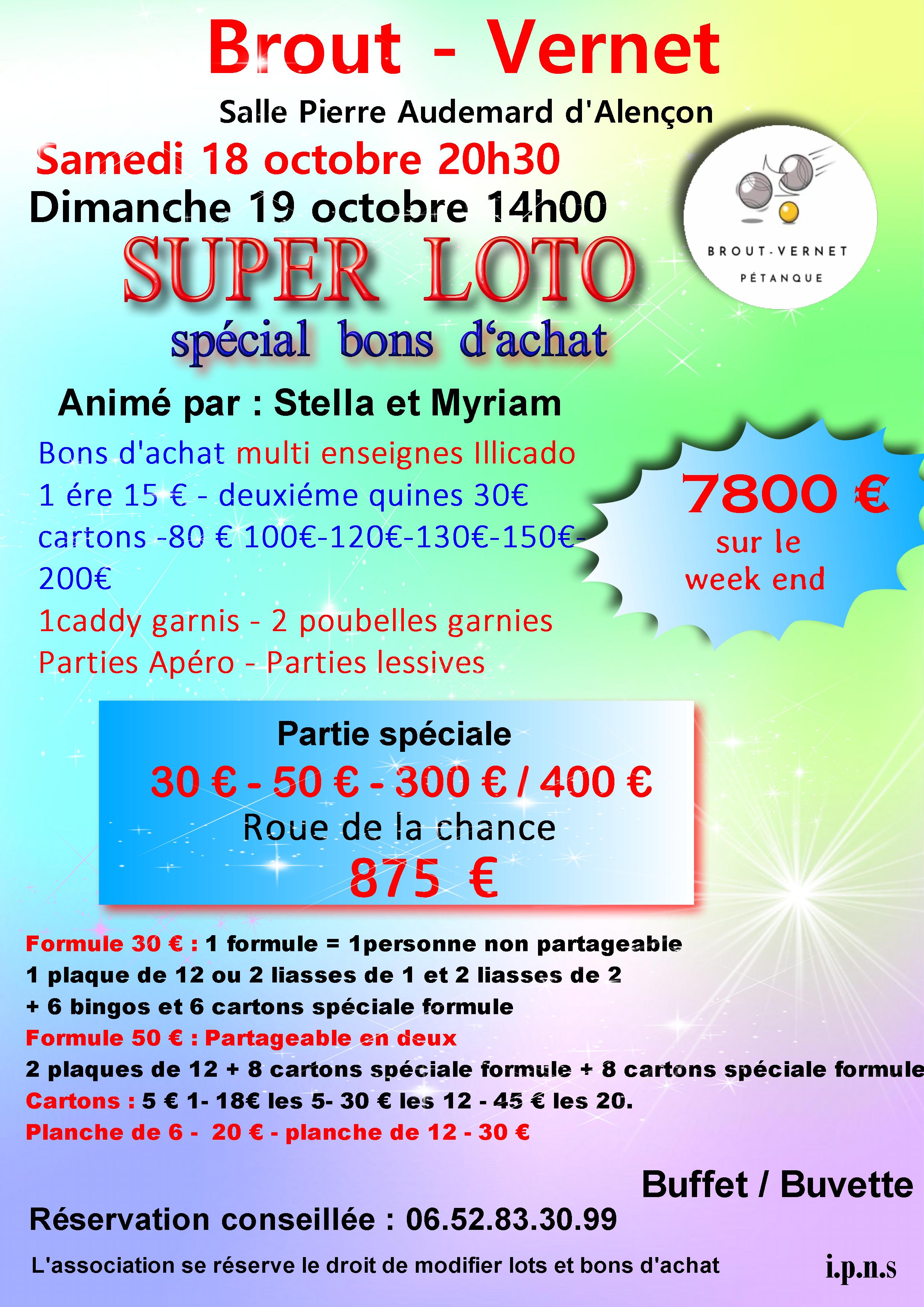 L'assocation Broût-Vernet Pétanque organise un loto les 18 et 19 octobre 2025 à la salle polyvalente.